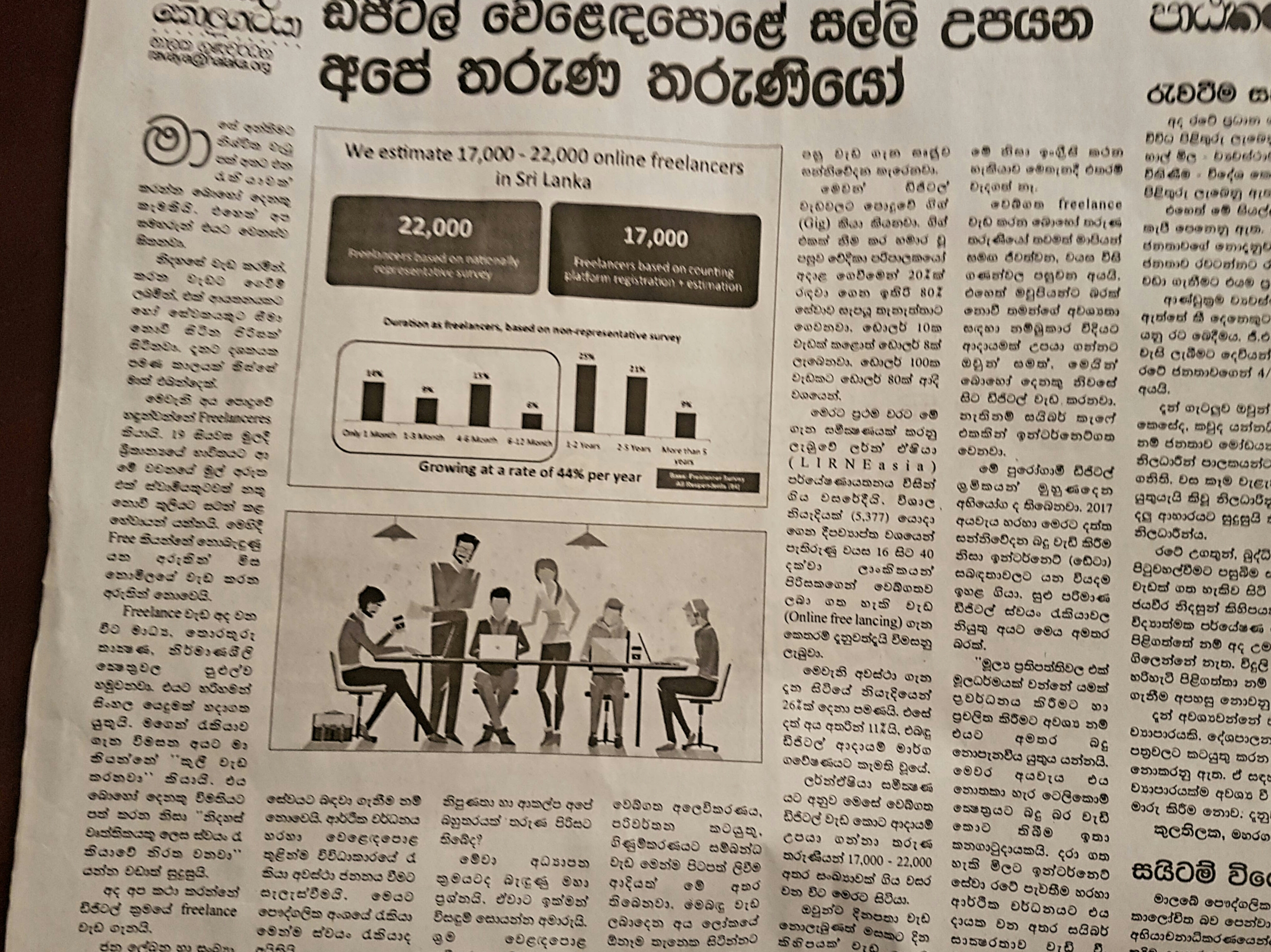 The premier Sinhala newspaper of ideas, Ravaya, carried a lengthy piece by Nalaka Gunawardene on online freelancing, set in the context of the overall problem of creating high-quality jobs that could attract young Sri Lankans. This probably concludes one of our most successful dissemination efforts in the official languages of Sri Lanka, other than English.