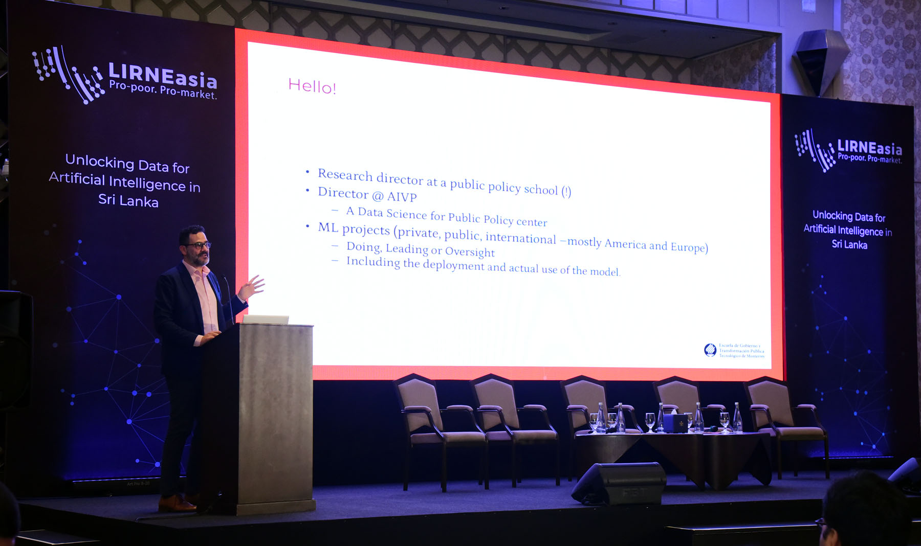 – Moderator, Merl Chandana, Team Lead – Data, Algorithms and Policy Team, LIRNEasia – Dr. Adolfo De Unánue, Director of Research, School of Government and Public Transformation, Leader of the Artificial Intelligence for Public Value Initiative, Tecnológico de Monterrey, Mexico – Dr. Kasun Amarasinghe, Senior Project Scientist, Data Science and Public Policy Lab, Carnegie Mellon University – Yasith Fernando, Chief Data and Analytics Officer, Dialog Finance – Ashwini Natesan, Legal consultant, expert in data governance and data protection |