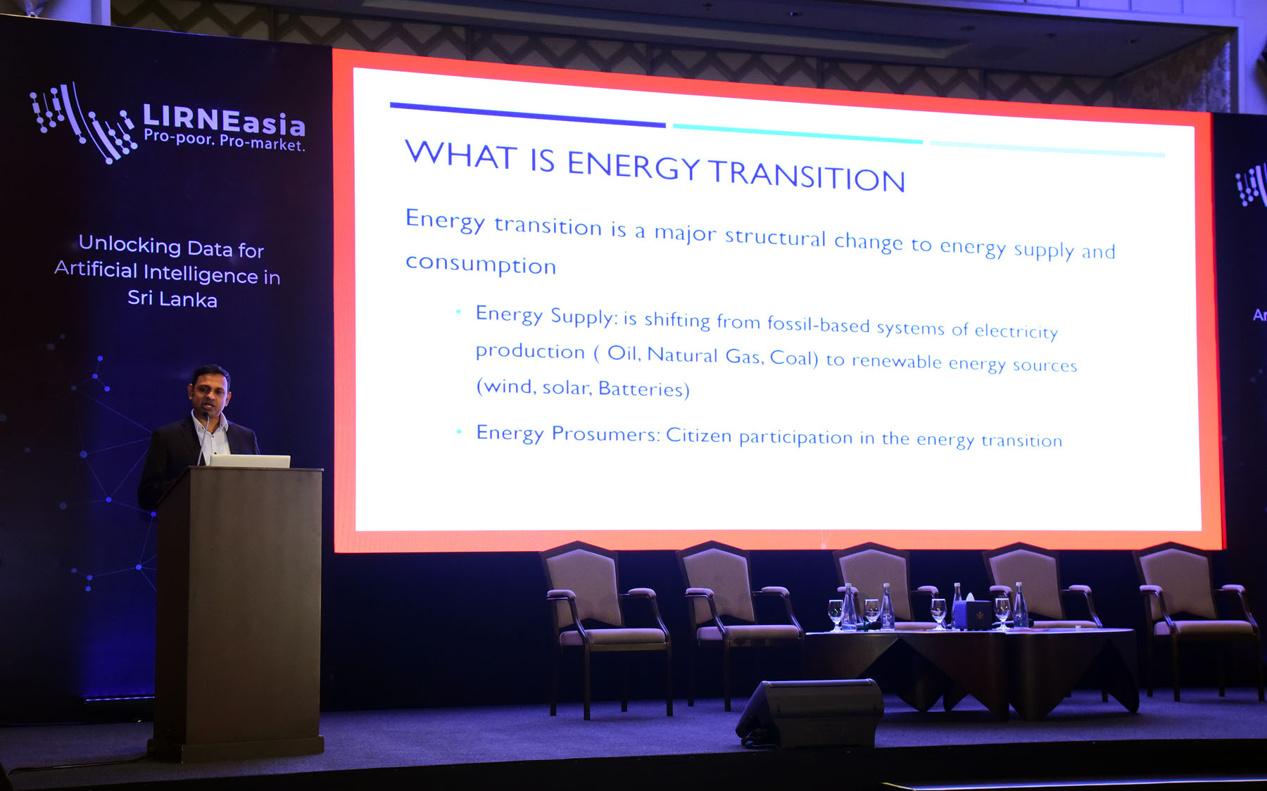 The second panel discussed how data and innovative approaches can transform the energy sector, especially in managing electricity use and improving efficiency. Moderator Prof. Rohan Samarajiva presented a hypothesis that poorer households often use less energy-efficient appliances, leading to higher costs. This formed the basis for LIRNEasia’s ongoing research on building a dataset on domestic electricity consumption.
