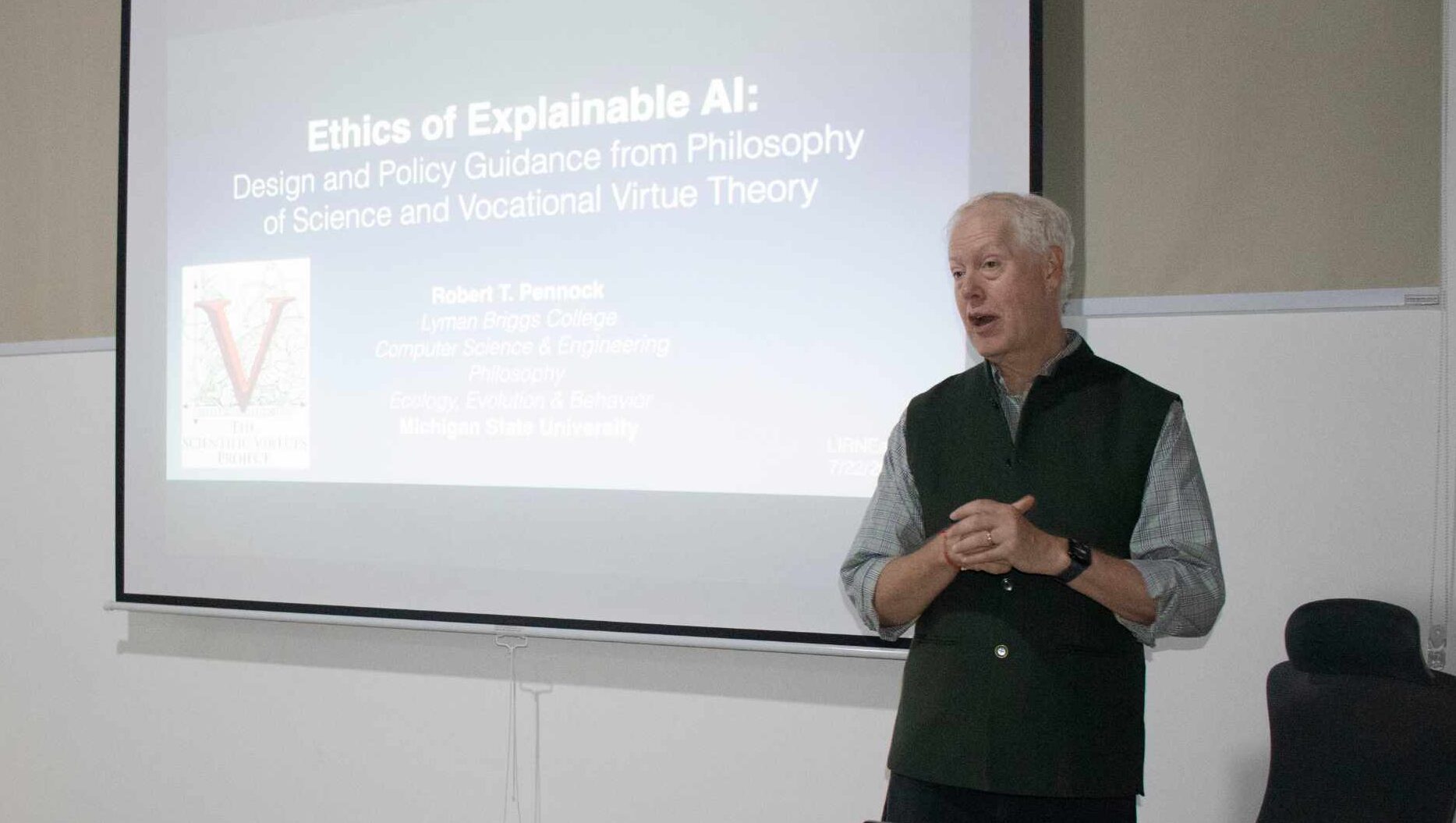 Dr. Robert T. Pennock sharing insights on the ethics of explainable AI during the Roundtable Dialogue