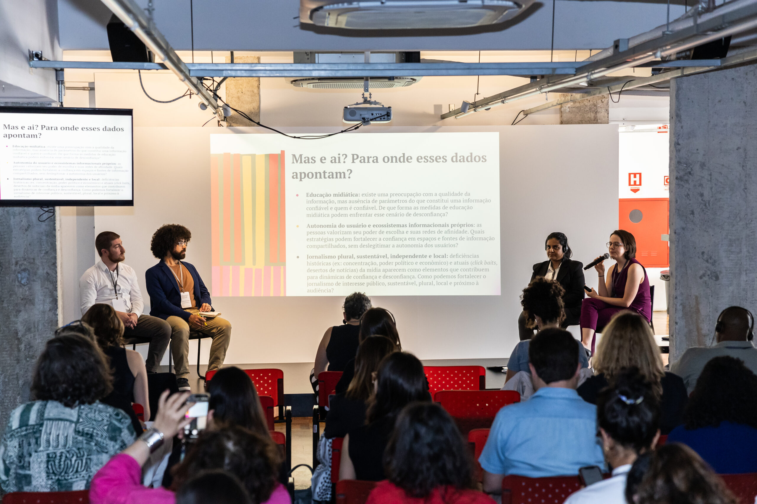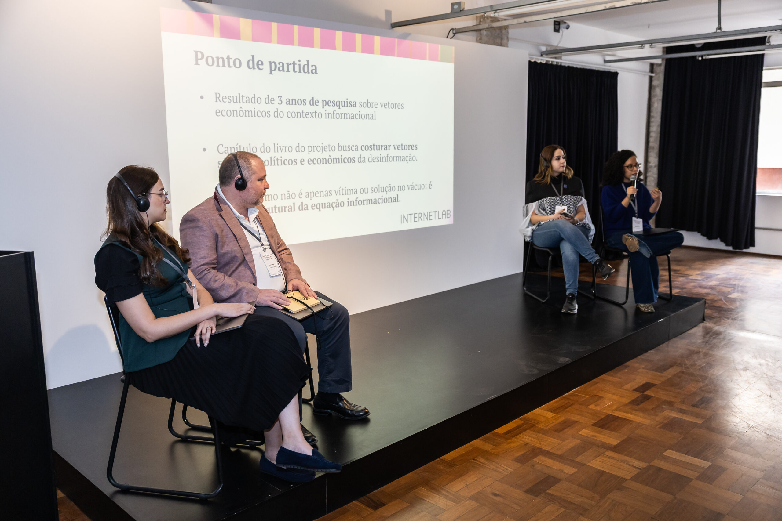 Alongside the internal workshop, InternetLab also organised a public event that drew an audience of more than 50 journalists, offering them a chance to hear directly from research teams whose work spans three regions. The public session featured two panels – “Journalism, Disinformation, and Regulation” and “Media Consumption and Disinformation.”